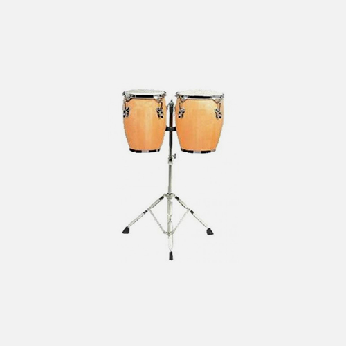Congas "JINBAO" 8 "+ 9" Natural. Bordo selecionado. Manchas de pele de búfalo. Arcos e hardware cromado. Acabamento brilhante Suporte duplo incluído.