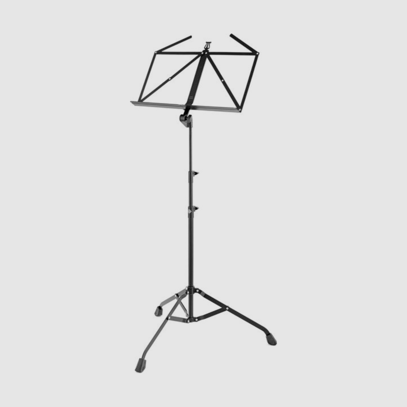 Elementos de fixação em metal O suporte para folhas pode ser ajustado horizontalmente Altura do suporte: 675 - 1.470 mm Suporte para folhas: 485 x 240 x 42 mm Altura total: max. 1730 mm Comprimento quando dobrado: aprox. 680 mm Diâmetro do suporte quando recolhido: aprox. 110 mm Construção robusta da cinta Material: Aço Porta-folhas: Tradicionalmente dobrável Construção da perna com duas peças extensíveis Peso: 2,52 kg