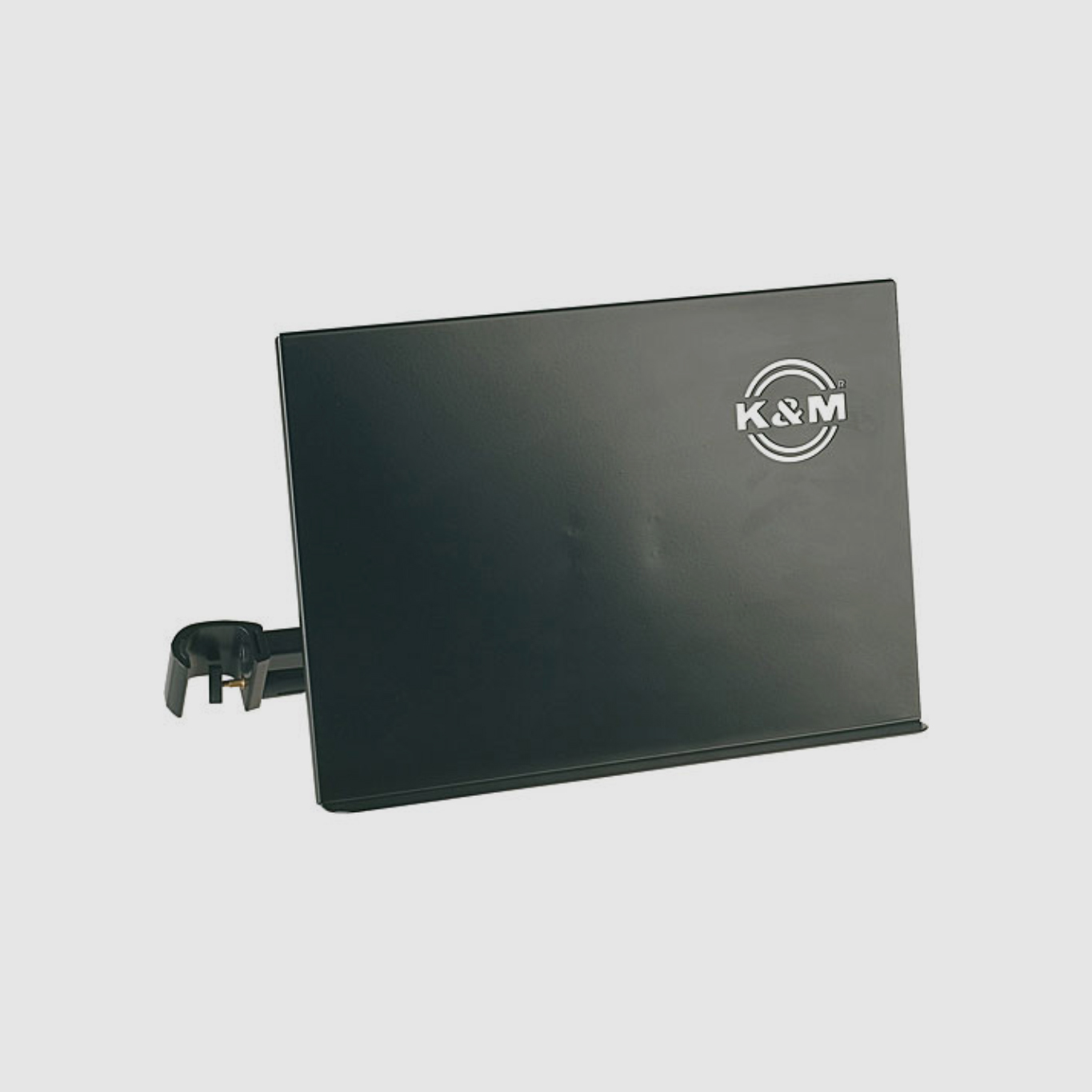 Elemento de fixação estável em alumínio com inserções protetoras de plástico Chapa de aço preta para partituras Suporte de música inclinável é infinitamente ajustável em altura e ângulo Comprimento do braço: aprox. 30 cm Pode ser parafusado no diâmetro do tubo de 30 mm Partituras: 420 x 300 x 30 mm Material: Aço Peso: 1,64 kg