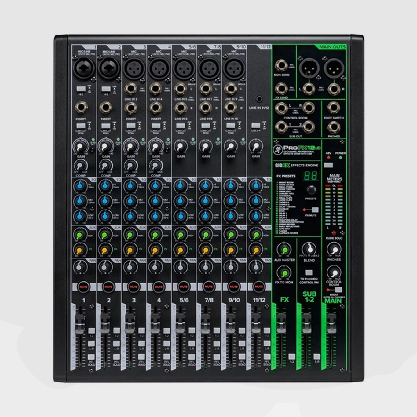 Experimente a melhor série de mixers USB analógicos profissionais com efeitos. O Mackie ProFX12v3 é um mixer de 12 canais que oferece aos artistas, artistas ao vivo e criadores de conteúdo um novo nível de desempenho com qualidade de estúdio. O som lendário está ao seu alcance, quer você esteja gravando um podcast ou se apresentando em uma cafeteria. O Mackie ProFX12v3 possui sete pré-amplificadores Onyx premiados e um versátil mecanismo de efeitos GigFX, permitindo obter gravações coloridas de alta resolução com taxas de amostragem de até 192 kHz. Para completar, o Mackie ProFX12v3 inclui o software Waveform™ OEM para potencializar sua configuração com o kit de ferramentas profissional que você merece.