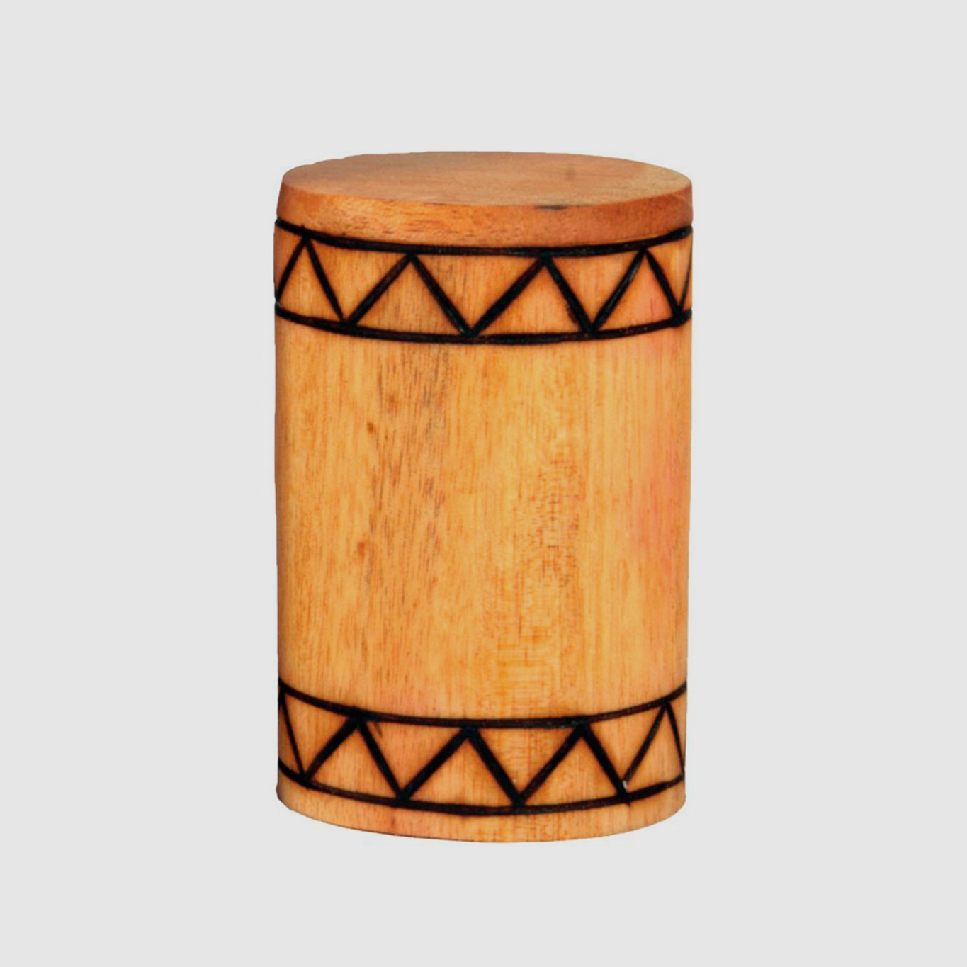 Shaker em madeira com enchimento de bolas de metal. 8 cm.