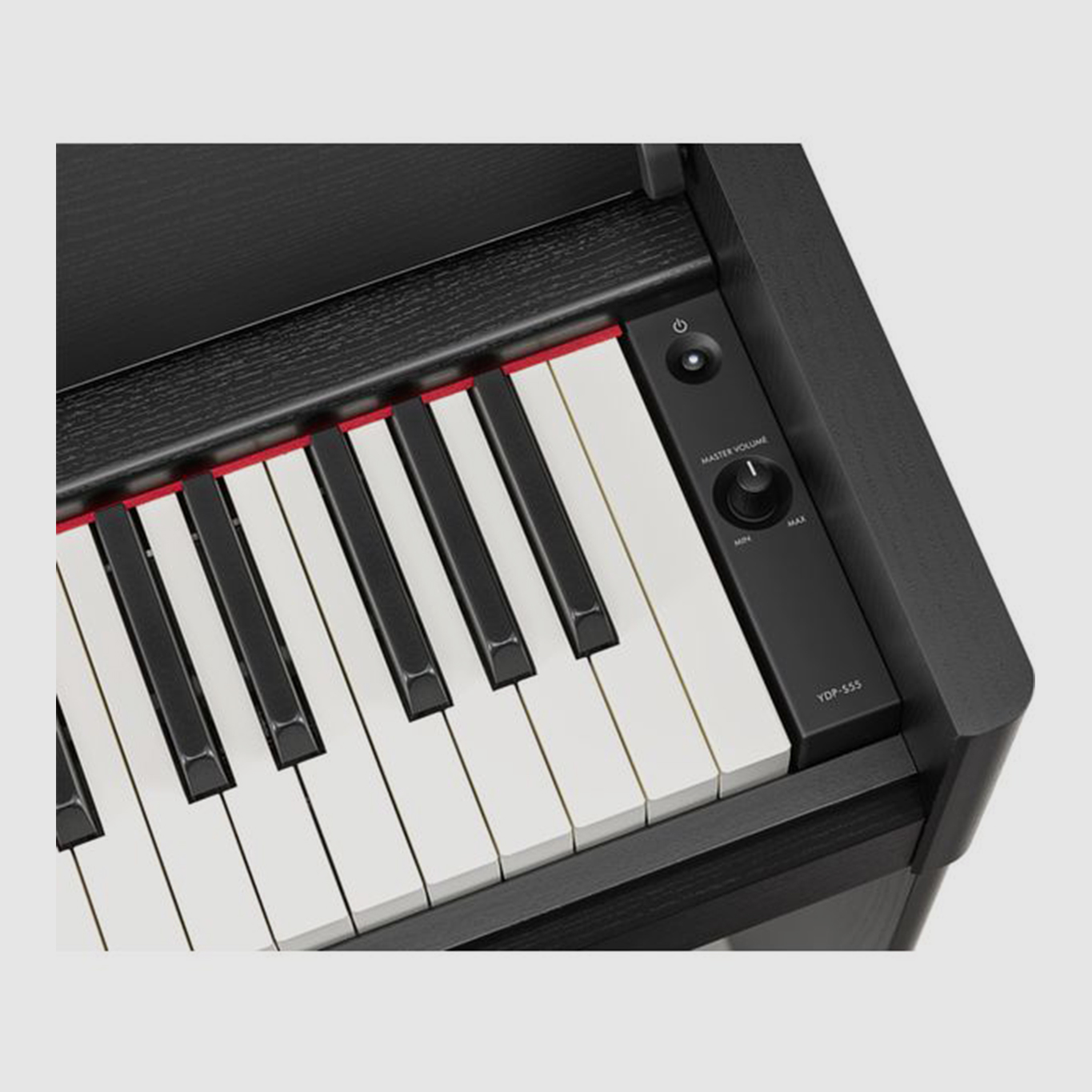 Yamaha YDP-S55 WH Arius Digital Piano, 88 teclas ponderadas com ação de martelo (martelo graduado, GH3) e camada superior com ébano e iovry sintéticos, 10 sons (incluindo um som de alta qualidade sampleado do piano de cauda Yamaha CFX), polifonia: 192 , efeitos (reverb: 4 tipos, Otimizador Estereofônico, Controle Acústico Inteligente), gravação midi (2 faixas), funções: dual, modo duo, metrônomo, transposição (-6 - +6), afinação (414,8 - 466, 8 kHz), pedais: sustain (meio abafador), sostenuto, soft, conexões: USB para host, 2x saída de fone de ouvido (6,3mm estéreo jack), sistema de alto-falantes 2 x 20W, fonte de alimentação (PA-300C) e livro de música " 50 obras-primas da música clássica" incluídas, dimensões (LxPxA): 1353 x 309 x 792 mm (profundidade com tampa de chave aberta 317 mm), peso: 40 kg, cor: Preto