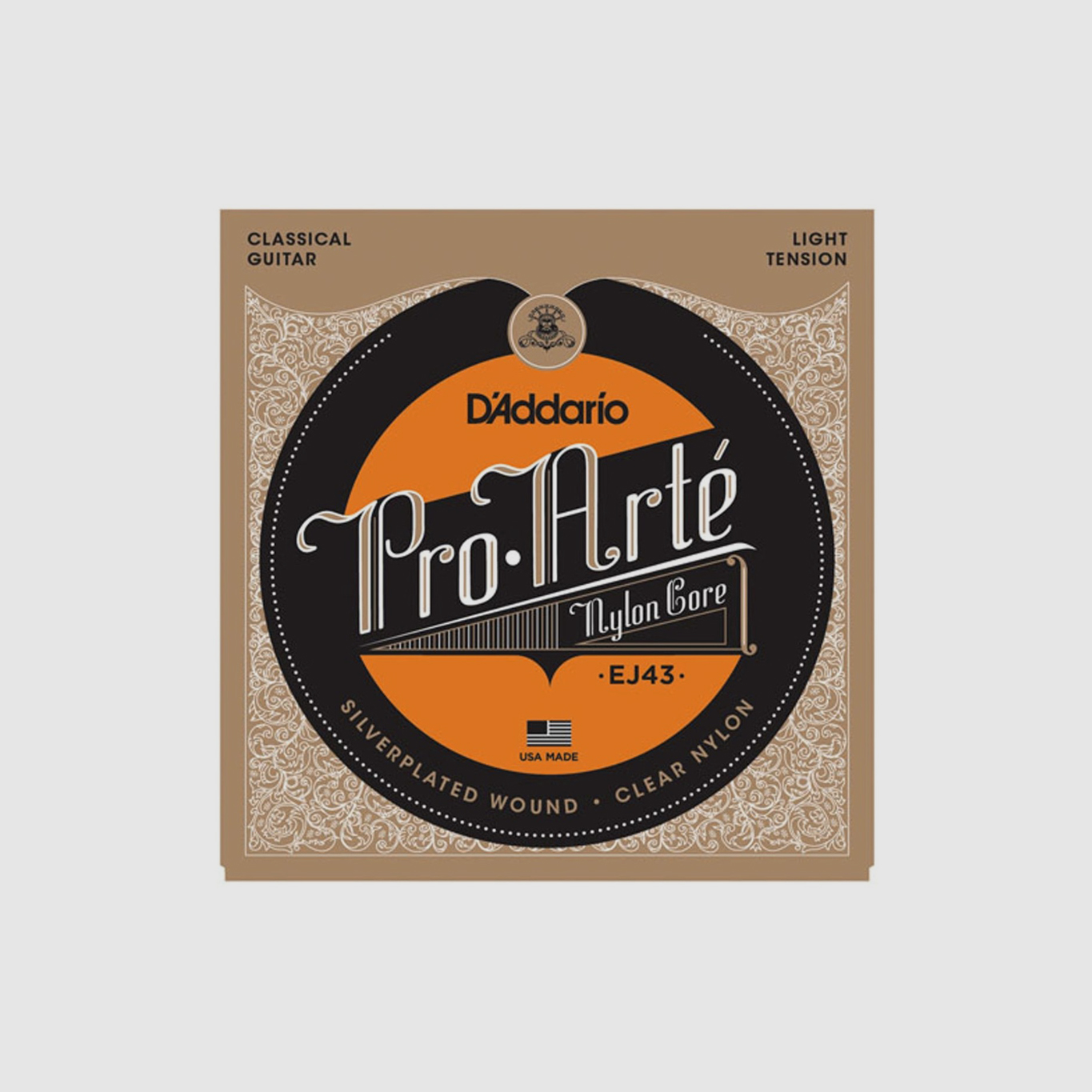 A EJ43 é a tensão mais leve disponível na série Pro-Arté mais vendida de D'Addario. Ótimo para iniciantes ou musicos experientes com um toque mais leve, eles proporcionam facilidade de toque sem sacrificar o tom rico. EJ43 contém prata nas cordas de baixo de nylon com agudos de nylon transparentes.