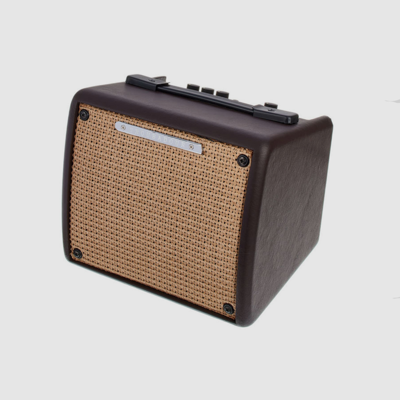 Qual é a única coisa que quase todos os músicos procuram quando se trata de amplificadores? Alguns podem dizer "tom imersivo puro", que seria, sem dúvida, seguido de "portabilidade". Os amplificadores de guitarra acústica Ibanez T Series oferecem exatamente isso, juntamente com a impressionante aparência de um amplificador de boutique artesanal. Se você está a tocar no café local ou se está s tocar em locais religiosos, os sons da Série T vão encher a sala. Além disso, você não terá que magoar as suas costas para ter o seu amplificador. A série Ibanez T foi projetada com portabilidade em mente. 2 canais: Guitarra e microfone Potência: 15 W @ 6 ohms Equipado com 1x altifalante de gama completa de 6,5 " Canal de guitarra: entrada jack, controles de volume, graves e agudos, chorus on / off Canal do microfone: entrada XLR, controle de volume