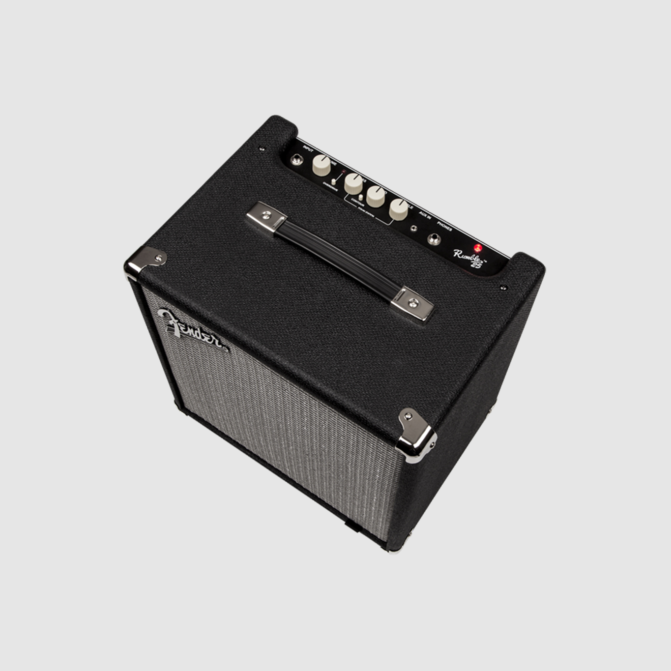 Para os baixistas de todos os níveis, os combos Rumble são projetados para serem incrivelmente compactos, portáteis e leves, com baixo tom Fender sísmico e recursos dignos de palco. O Rumble 25 combina 25 W de puro tom de baixo Fender. Pequeno, mas barulhento, é construído com excelentes recursos, incluindo o estilo clássico Fender, altifalante de 8 ", circuito overdrive, interruptor de contorno central e muito mais. 25 W Altifalante de design especial Fender 8 ” Painel de controlo de montagem superior com botões de controlo de “soft touch radio” em marfim Compartimento leve e compacto, com grade removível