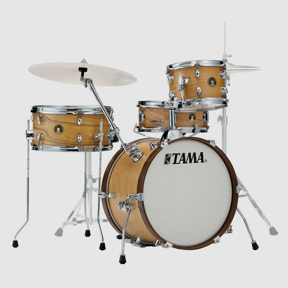 A bateria Tama Club Jam LJL48S-SBO em acabamento louro acetinado é um conjunto de 4 peças com tamanho compacto e edição limitada. O conjunto de bateria consiste num bombo de 18"x12", timbalões de 10"x7" e de 14"x7" e uma tarola de 13 "x5". A Tama Club Jam é um híbrido de álamo e madeira Mersawa, que resulta num som equilibrado e quente com um caráter vintage. A parte especial sobre a Tama Club Jam Shell Set é que ela não tem apenas o suporte de tom ligado ao bumbo, mas também um suporte de prato. Este foi baseado na bateria dos anos 50 e 60 e sublinha o charme retro do Tama Club Jam Set muito harmoniosamente. O kit de bateria Tama é especialmente adequado para pequenos clubes, bateristas de jazz e sala de ensaios. Pratos, outros suportes e ferragens não incluídos