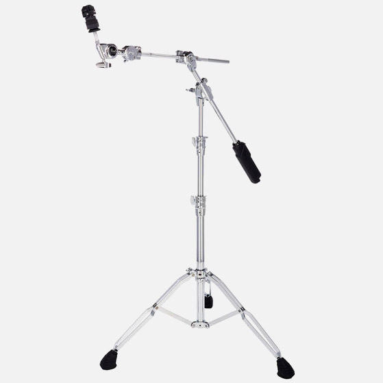 Suporte de boom cymbal alta tecnologia A lança pode ser retraída no tripé e, portanto, pode ser usada como um suporte de prato reto Contrapeso destacável no braço de extensão Braço de suporte adicionalmente ajustável Igualmente retrátil para uso normal Sistema de inclinação giroscópico patenteado Sistema de parafuso de bloqueio de asa