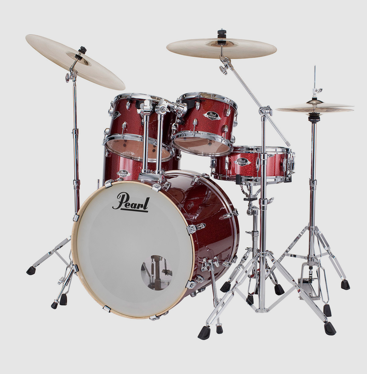 Os drumsets da série Pearl Export vêm como kits completos incl. hardware e pratos. Eles são perfeitos para iniciantes e bateristas avançados. Na configuração EXX705NBR / C704, o conjunto Export vem com um bombo de 20", timbalões de 10" e 12", assim como um timbalão de chão de 14" e uma tarola de 14". As cápsulas de poplar de alta qualidade com sistema de montagem Opti-Loc e hardware high-end fazem deste conjunto uma excelente escolha.Quando se trata de aparência, este conjunto impressiona com o acabemento em Black Cherry Glitter e com um visual profissional para um conjunto profissional.