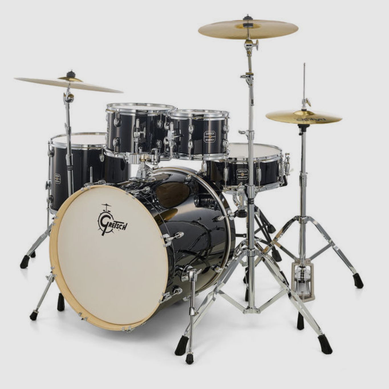 O kit Gretsch Energy Standard Black vem com todo o hardware necessário para iniciar o treino para ser baterista, incluindo um pedal de bombo, um suporte de hi-hat, um suporte de tarola e suporte de prato. Os kits de Energy também incluem um conjunto de pratos Paiste 101 de 3 peças que tem: Hi Hat, 13 ", Crash 16", Ride 20 ". Bombo de 22"x 18", tarola de 14"x 5.5", timbalões de 10"x 07" e de 12"x 08" e timbalão de chão de 16"x 16".
