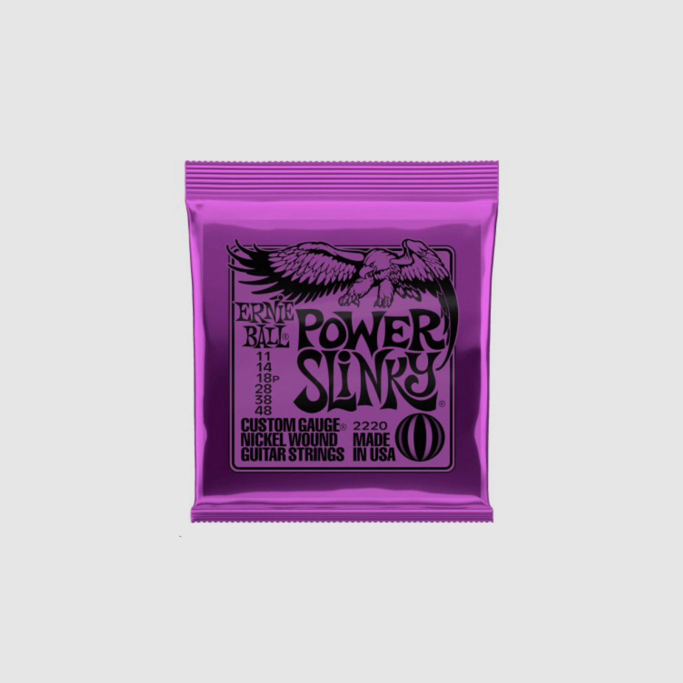 Cordas de guitarra elétrica Ernie Ball níquel são feitas de fio de aço niquelado enrolado em torno de fio de aço em forma de hex chapeados. As cordas lisas são feitas de aço carbono alto estanhado especialmente temperado produzindo um tom bem equilibrado para a guitarra. .011, .014, .018p, .028, .038, .048