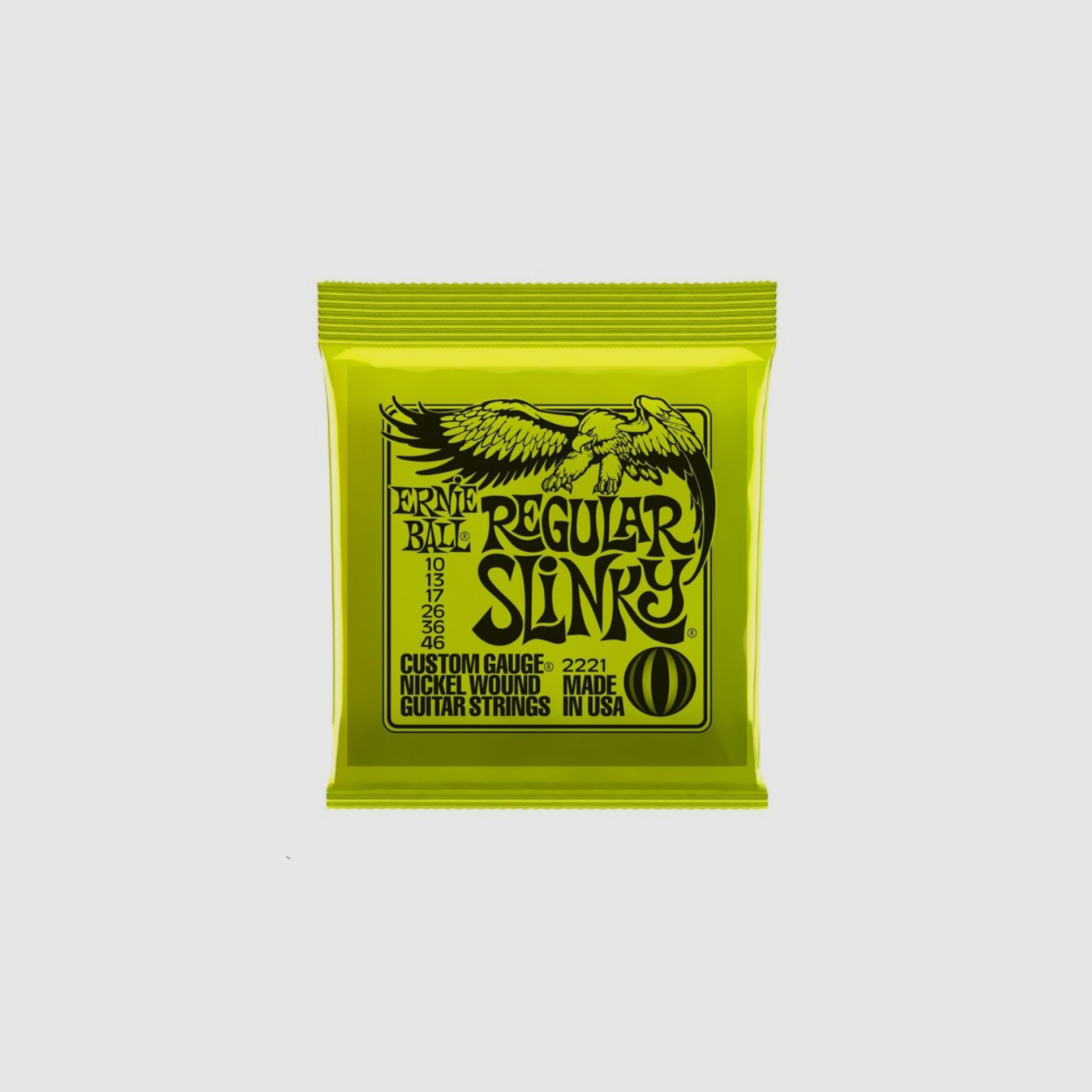 Cordas de guitarra elétrica Ernie Ball níquel são feitas de fio de aço niquelado enrolado em torno de fio de aço em forma de hex chapeados. As cordas lisas são feitas de aço carbono alto estanhado especialmente temperado produzindo um tom bem equilibrado para a guitarra. .010, .013, .017, .026, .036, .046
