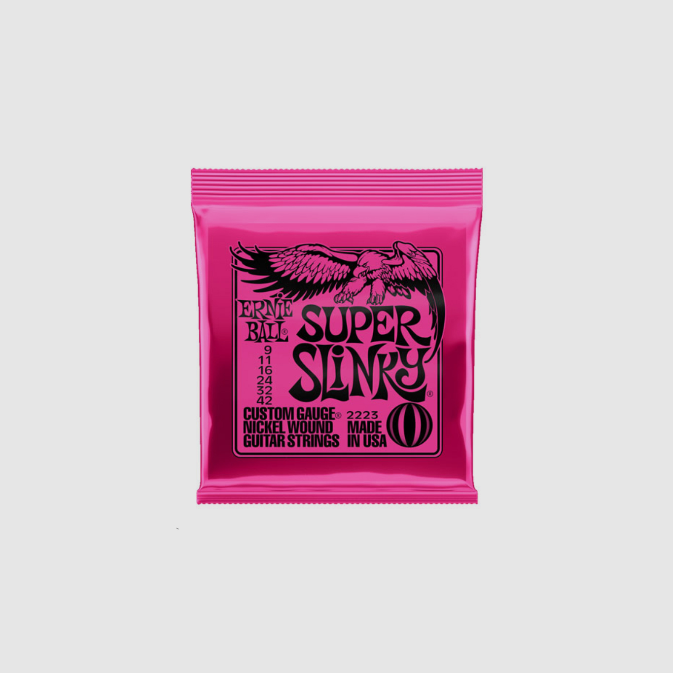 Cordas de guitarra elétrica Ernie Ball níquel são feitas de fio de aço niquelado enrolado em torno de fio de aço em forma de hex chapeados. As cordas lisas são feitas de aço carbono alto estanhado especialmente temperado produzindo um tom bem equilibrado para a guitarra. 009, .011, .016, .024w, .032, .042