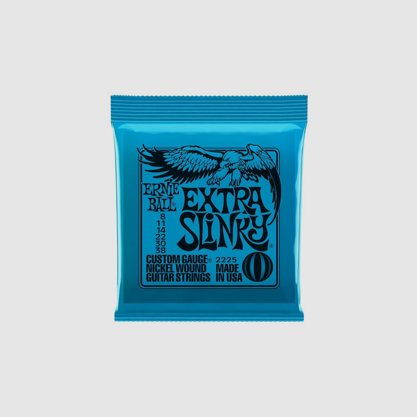 Cordas de guitarra elétrica Ernie Ball níquel são feitas de fio de aço niquelado enrolado em torno de fio de aço em forma de hex chapeados. As cordas lisas são feitas de aço carbono alto estanhado especialmente temperado produzindo um tom bem equilibrado para a guitarra. .008, .011, .014, .022w, .030, .038