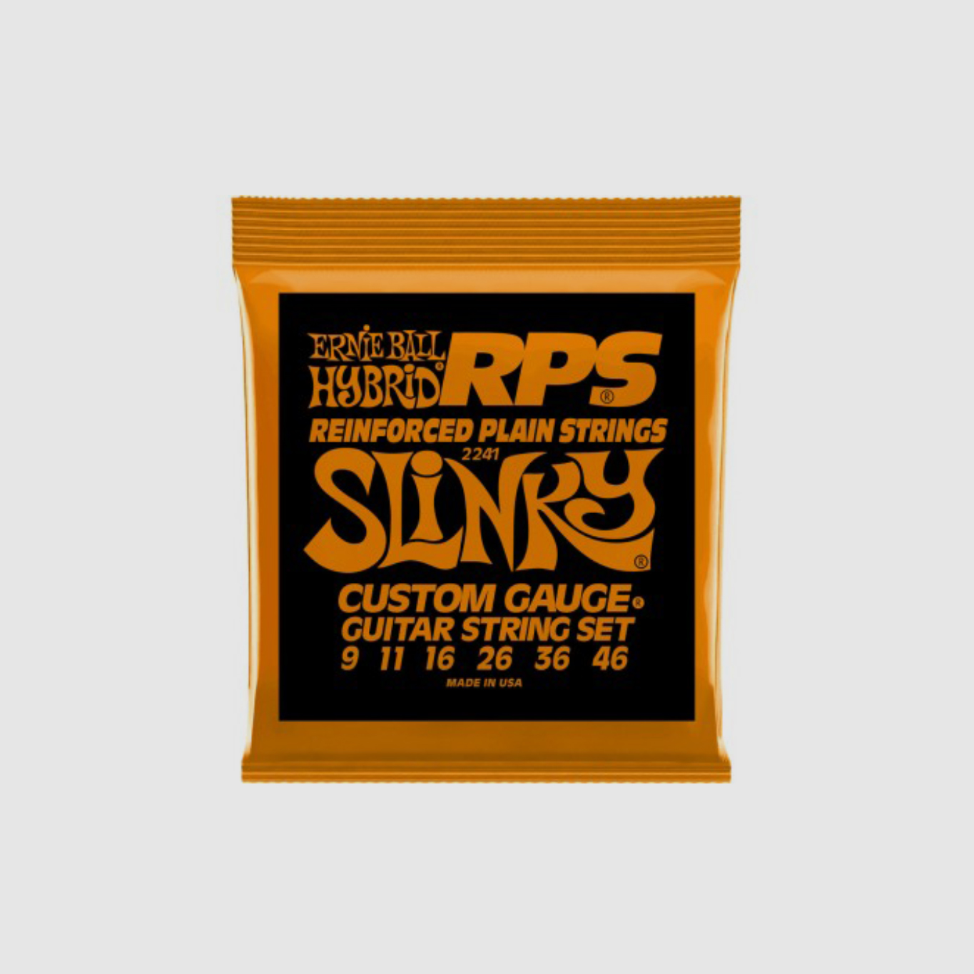 Cordas de guitarra elétrica Ernie Ball RPS Nickel Wound são feitas de fio de aço niquelado enrolado em torno de fio de aço em forma de hex chapeado de estanho. As cordas lisas apresentam um enrolamento patenteado de arame de latão que é firmemente amarrado em torno da torção da corda final da bola para minimizar o deslizamento e a quebra na extremidade da esfera. As sequências de caracteres RPS duram mais e permanecem em sintonia melhor do que as sequências planas convencionais. .009, .011, .016, .026, .036, .046
