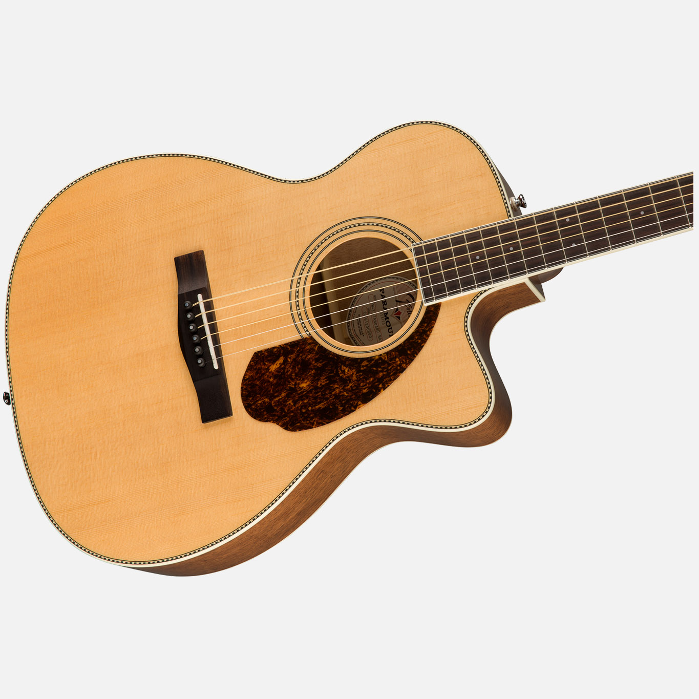 Os instrumentos acústicos da série Paramount projetados nos EUA são finamente trabalhados e especialmente expressos para dar vida à sua visão artística. Cada guitarra totalmente sólida oferece muitos elementos de design do legado modelos clássicos dos anos 60, incluindo xadrez e roseta xadrez, forma de pickguard e incrustações de "Concert Tone" de madrepérola. Mesmo com este visual art déco, os instrumentos da Paramount ainda mantêm o pé no design moderno. Todos os novos sistemas de pré-amplificação PM projetados por Fender e Fishman® são especificamente expressos para cada forma de corpo na série, garantindo controle e variação tonais completos. Inclui uma hardshell case e umidificador .