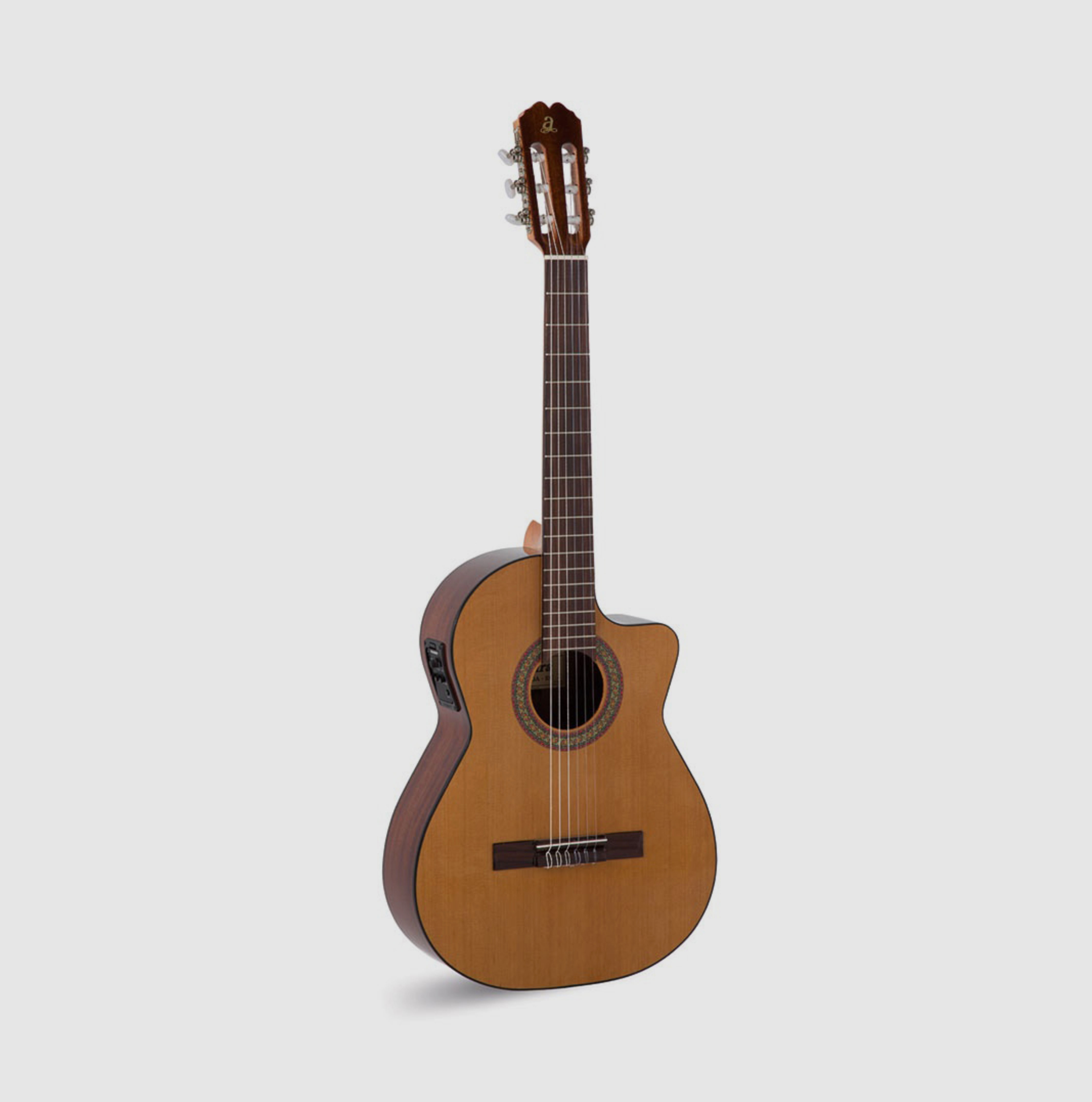 A guitarra Admira Malaga Cutaway eletrificada é uma guitarra com corpo estreito, com o tampo em cedro maciço e com pickup Admira.