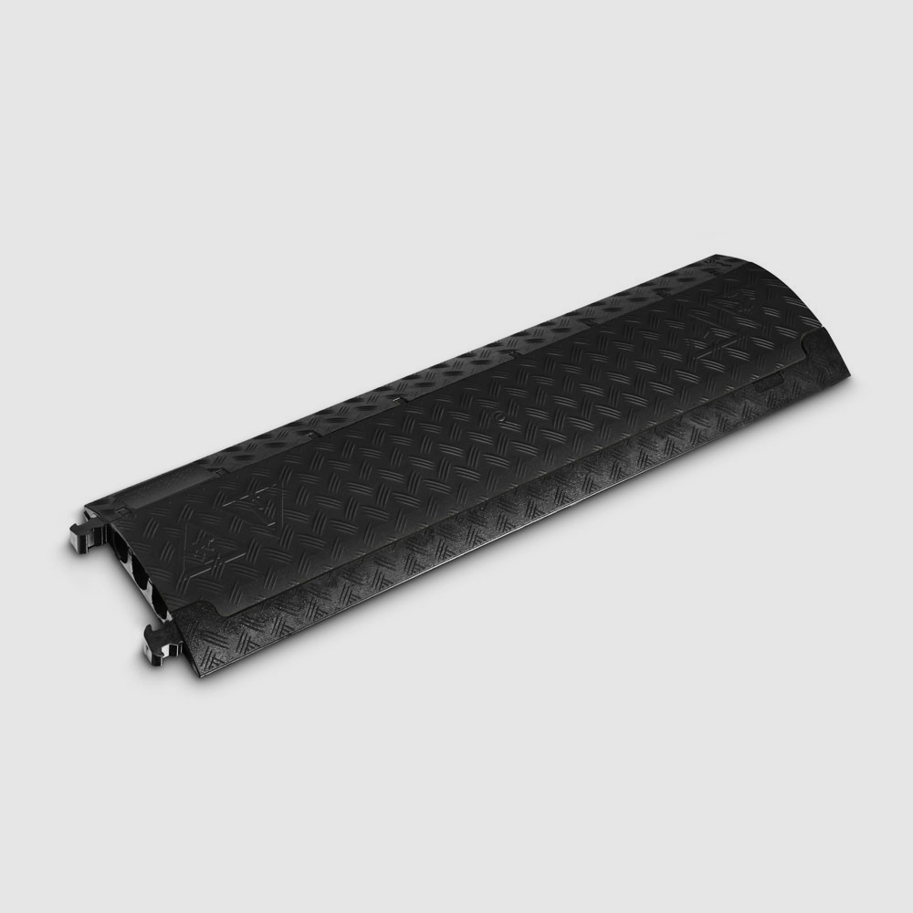 Protetor de cabo de 3 canais com tampa preta Pequeno, mas resistente. Leve, profissional e universalmente utilizável. O novo DEFENDER Mini atende a todas as expectativas no que diz respeito à proteção profissional de cabos, expandindo a série DEFENDER para incluir um cruzamento de cabos compacto e muito leve (apenas 5 kg!) Capaz de suportar o tráfego de veículos. Ostentando três canais a cabo com uma seção transversal de 35 mm e uma altura de instalação de 48 mm, esse cruzamento é usado principalmente em ambientes fechados, mas com uma capacidade de mais de 2 toneladas, também pode suportar facilmente o tráfego rodoviário. A base do DEFENDER Mini possui uma superfície antiderrapante, de modo a garantir o suporte ideal em tantos tipos diferentes de piso quanto possível. Como todo o cabo DEFENDER