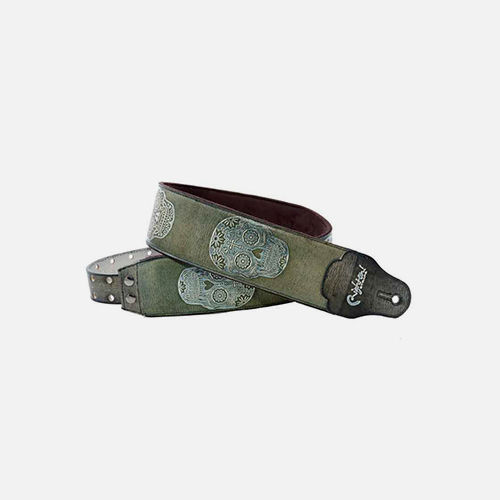 Pode ser que você queira uma correia de visual fino e bem trabalhada que tenha uma atenção especial aos detalhes, se esta é a correia Leathercraft Sugar vocês está certo. Feita de mão de couro genuíno de alta qualidade agged e pintado com gravura de crânios. Por favor, note que as cores podem variar ligeiramente devido ao trabalho de pintura artesanal. A correira Leathercraft Sugar tem um comprimento ajustável de 95 cm a 150 cm com o exclusivo sistema de ajuste RAS, que permite ajustar a alça de uma forma elegante e prática. Um mais, olhe nossos novos pickholders, integrados na aba traseira da alça. As escolhas permanecem nos buracos com firmeza.