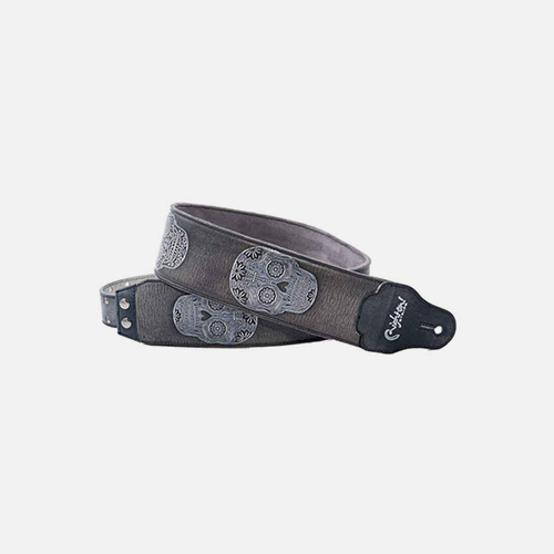Pode ser que você queira uma correia de visual fino e bem trabalhada que tenha uma atenção especial aos detalhes, se esta é a correia Leathercraft Sugar vocês está certo. Feita de mão de couro genuíno de alta qualidade agged e pintado com gravura de crânios. Por favor, note que as cores podem variar ligeiramente devido ao trabalho de pintura artesanal. A correira Leathercraft Sugar tem um comprimento ajustável de 95 cm a 150 cm com o exclusivo sistema de ajuste RAS, que permite ajustar a alça de uma forma elegante e prática. Um mais, olhe nossos novos pickholders, integrados na aba traseira da alça. As escolhas permanecem nos buracos com firmeza.