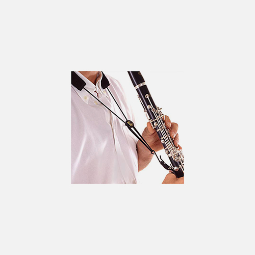 Correia Nylon, com reforço almofadado, cordão elástico, dois suportes em couro.