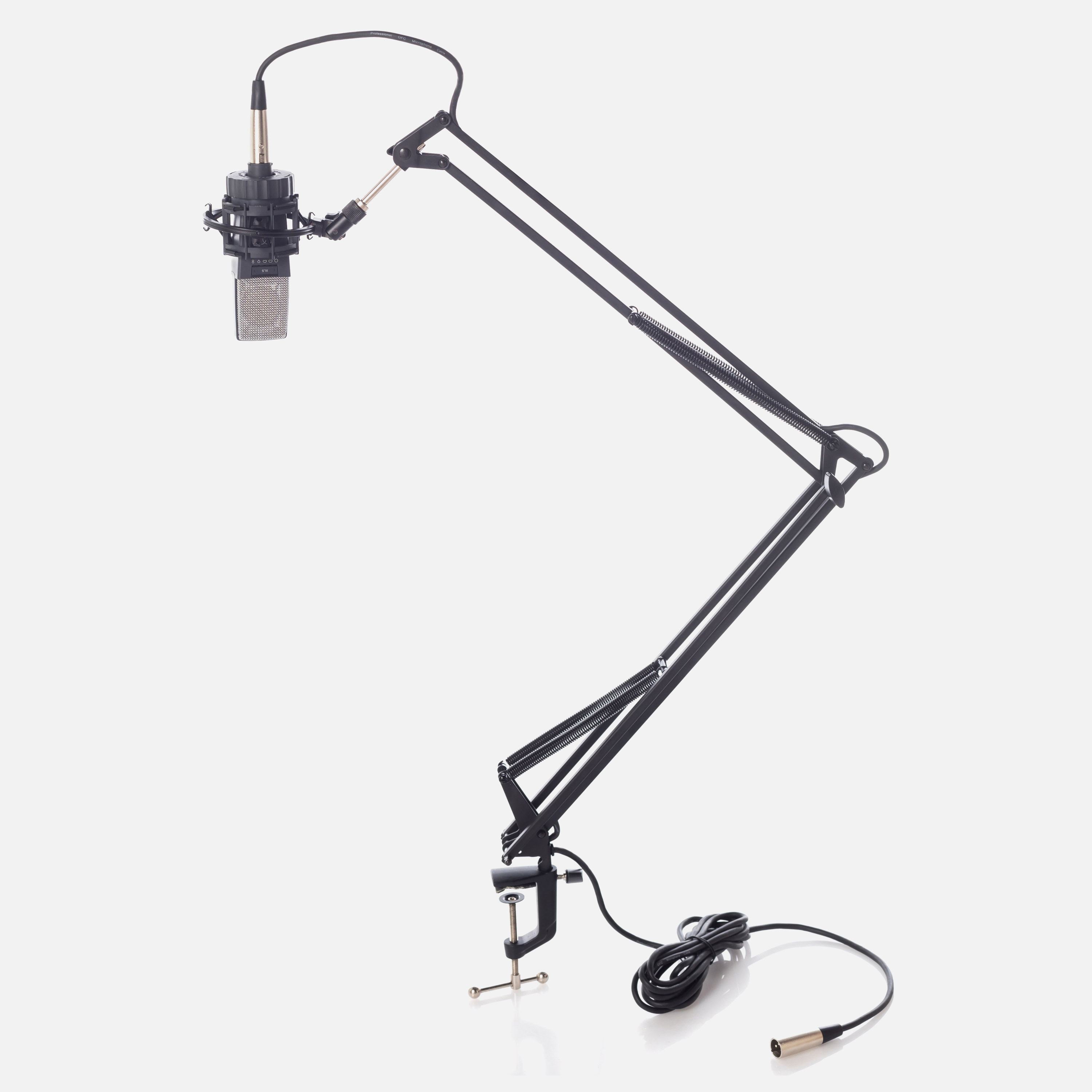 Suporte de mesa para microfone com braço flexível para estúdios e workstations multimédia Grampo de aperto para uma superfície de mesa superior até 55 mm Adaptador de rosca e cabo de microfone incluídos