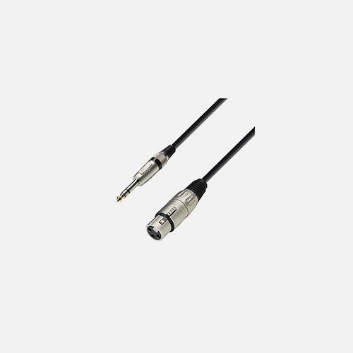 Cabo de sinal balanceado com um plugue TRS de 6,3 milímetros e um plugue XLR fêmea, adequado para a transmissão de sinais de microfone sensíveis para a mesa de mixagem ou amplificador. Utiliza tomadas originais Adam Hall e material de cabo de alta qualidade.