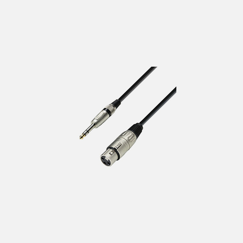 Cabo de sinal balanceado com um plugue TRS de 6,3 milímetros e um plugue XLR fêmea, adequado para a transmissão de sinais de microfone sensíveis para a mesa de mixagem ou amplificador. Utiliza tomadas originais Adam Hall e material de cabo de alta qualidade.