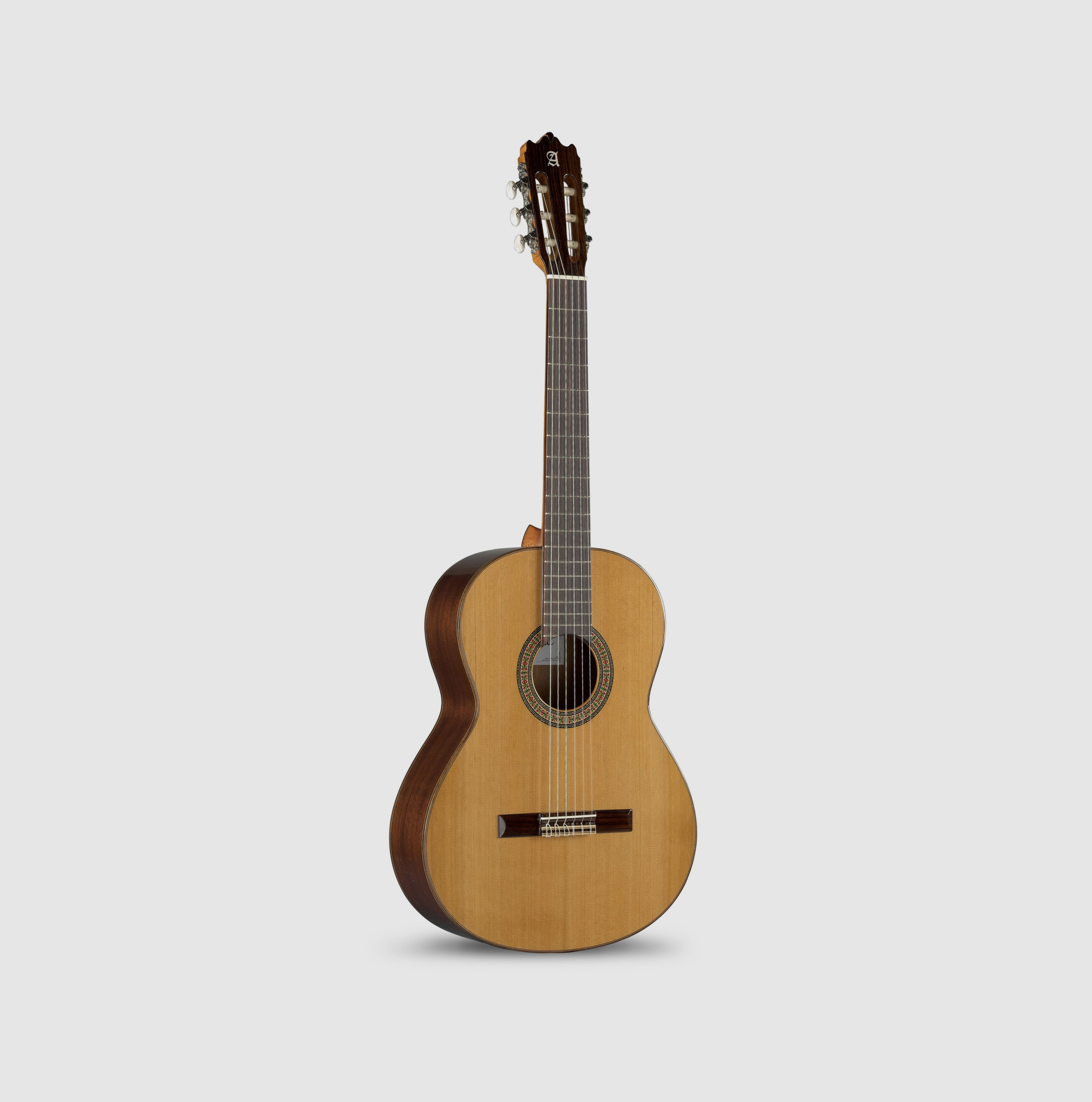 A guitarra clássica Alhambra 3C tem o tampo maciço em cedro, corpo em sapelli, escala em pau-santo da Índia, sanefas em pau-santo da Índia.