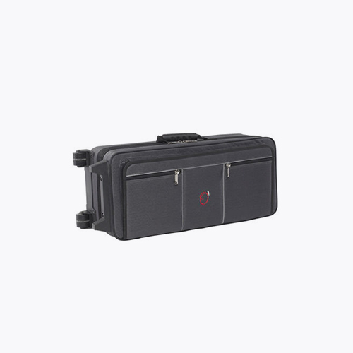 Bolso, sistema de transporte com rodas e duas asas forradas. Asa de plástico na parte superior.