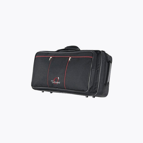 Estojos de poliéster plastificados, acolchoados, forro de veludo, preenchidos com poliuretano, mochila acoplável, bolsos e duas alças.