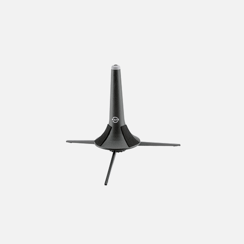 Peg de plástico preto com almofadas de feltro para proteger o instrumento. A base da perna de metal destacável é fixada na cavilha para que toda a unidade possa ser armazenada na campainha do instrumento para facilitar o transporte.