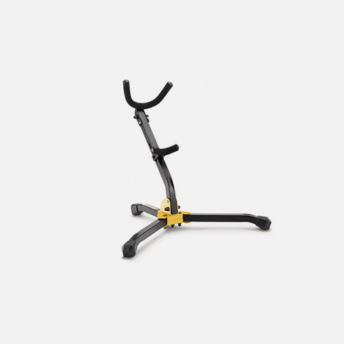 Mais seguro do que qualquer outro suporte. Com o sistema Hercules AGS (Auto Grip System), basta simplesmente pousar o saxofone no apoio e os braços vão automaticamente segurar firmemente o instrumento. Pernas articuladas com travamento permitem ajustar-se a outros equipamentos em redor. Possibilidade de extensão de duas hastes para instrumentos extra sem ocupar mais espaço. Inclui saco