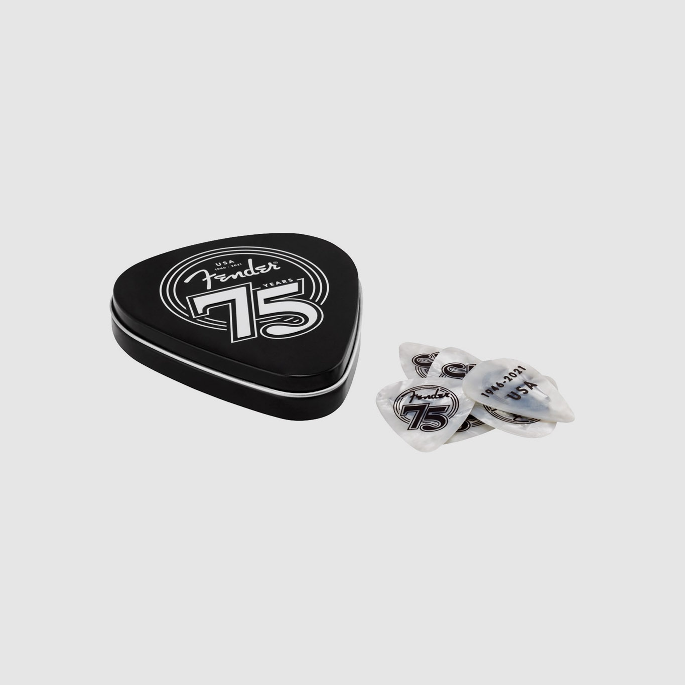 Disponível apenas por um tempo limitado, esta caixa de palhetas contém 18 palhetas de celuloide médias em pérola branca com um logótipo do 75º aniversário. Celuloide é um material de primeira escolha e a pedra angular da colecção de palhetas Fender durante décadas. As palhetas de celuloide dão o toque tradicional e um tom musical quente e redondo. A forma tradicional 351, o nosso desenho de palheta mais popular, é um acessório perfeito para jogadores de estilos e técnicas versáteis.