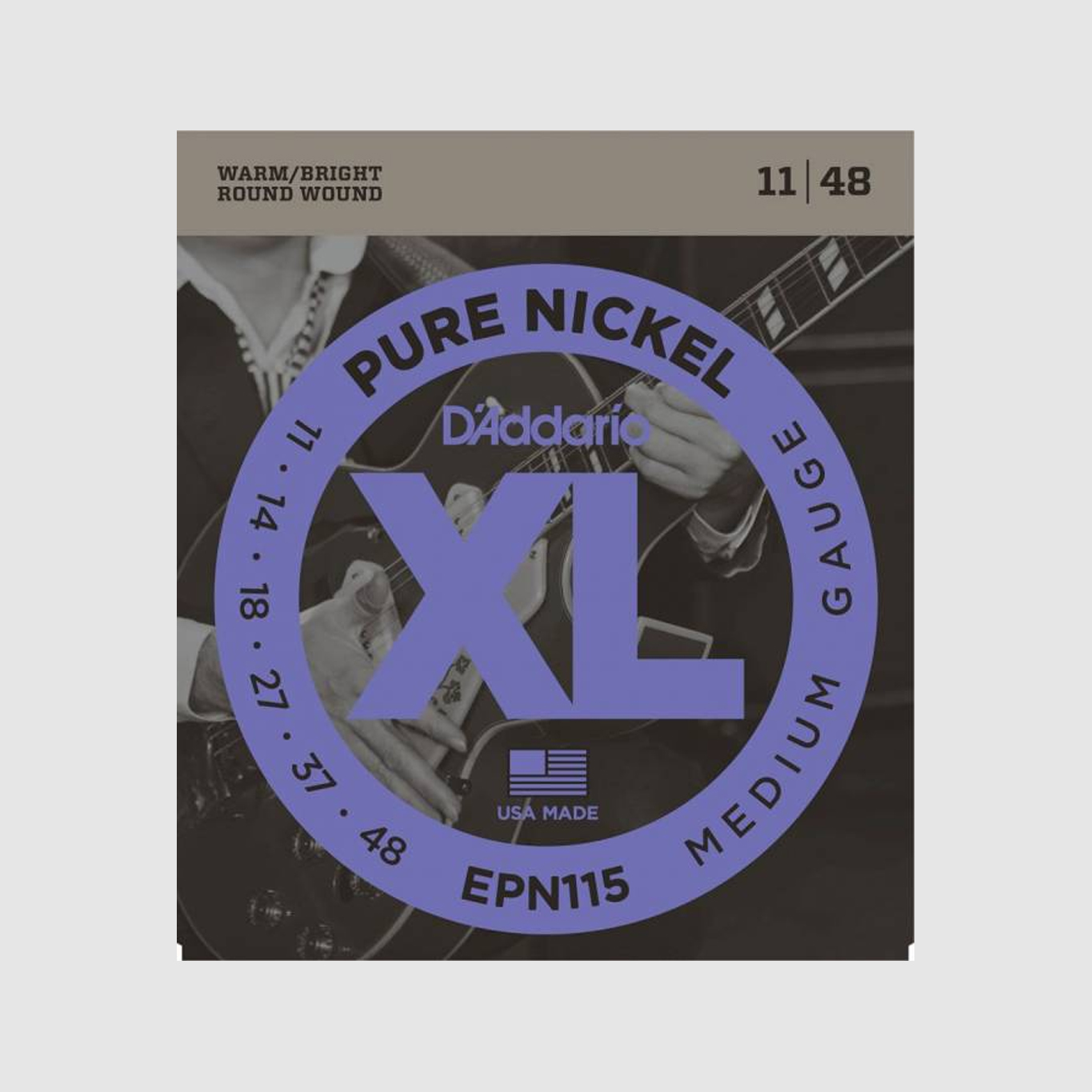 EPN115 é um conjunto de cordas de calibre médio para guitarra elétrica que oferece um som quente e vintage de Pure Nickel que produz o som de guitarra vintage da década de 1950, uma época em que o fio de níquel puro era usado para enrolar as cordas da guitarra. Essas cordas produzem os tons ricos e quentes ouvidos no blues tradicional, rock & roll e country.