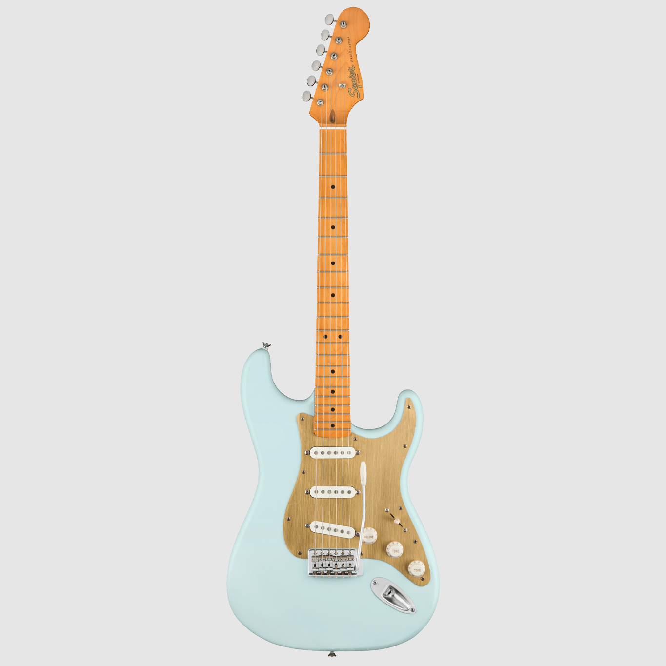 Os primeiros instrumentos com o nome Squier foram lançados em 1982, respondendo à demanda por designs Fender® genuínos a preços acessíveis. A coleção Squier 40th Anniversary celebra a jornada de 40 anos da marca de nível básico da Fender com edições especiais da Telecaster®, Stratocaster®, Jazzmaster®, Precision Bass® e Jazz Bass®, todas disponíveis nas variantes Gold Edition e Vintage. O Squier® 40th Anniversary Stratocaster®, Vintage Edition é um modelo de homenagem com alma decorado com uma coleção de recursos clássicos para entusiastas Squier de mente retrô. Com hardware cromado envelhecido, um escudo de alumínio anodizado, braço de maple manchado vintage, placa de pescoço de aniversário gravada e acabamento acetinado por toda parte, esta Strat homenageia a herança e ascendência do catálogo da Squier. Refinamentos para este modelo comemorativo incluem um perfil de braço em forma de "C" confortável e fino para uma sensação fácil de tocar, afinadores de estilo vintage e ponte tremolo sincronizada de 6 selas para desempenho e estilo autênticos e captadores de bobina. simples com ímãs de alnico 5 para um tom familiar de Strat.