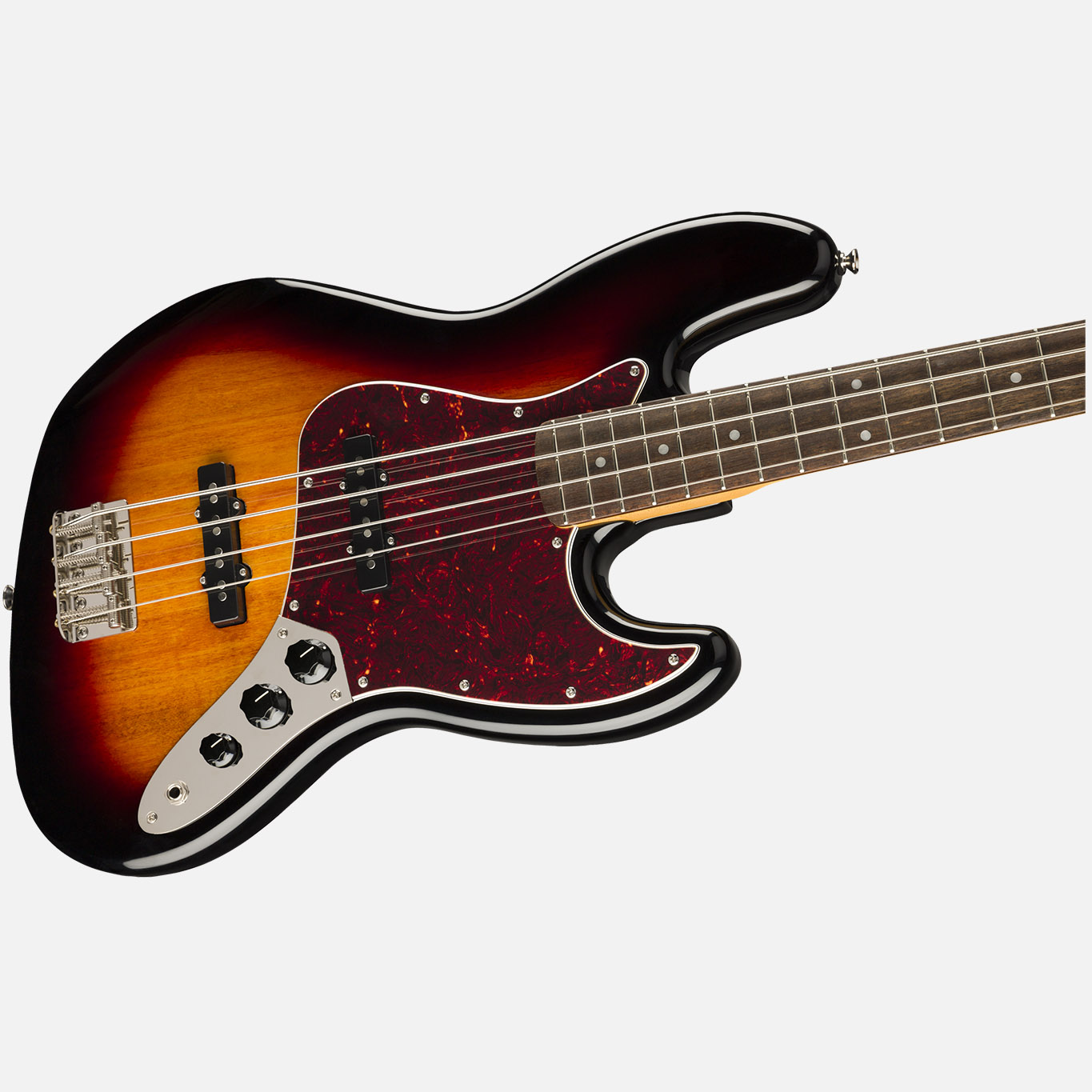 O baixo Fender Squier Classic Vibe '60s Jazz Bass possui um Material: Álamo Revestimento do corpo: Poliuretano brilhante Pescoço Pescoço: Bege, Forma "C" Revestimento do pescoço: Vintage Tint Gloss Braço: Laurel indiano, 241 mm (9,5 ”) Frets: 20, Narrow-Tall (N / A para Fretless) Posição Inlays: Ponto Pearloid Porca (Material / Largura): Osso, 38,1 mm (1,5 ”) Máquinas de afinação: estilo vintage Comprimento da escala: 3464 (864 mm) Hardware Ponte: Estilo Vintage de 4 selas com selas de aço com rosca Pickguard: Casco de tartaruga de 4 camadas Captadores: Fender projetado Alnico Single-Coils Botões de controle: Plástico preto Acabamento de Hardware: Níquel