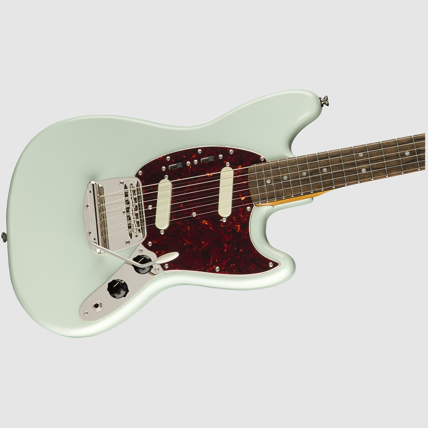 Apesar de seu tamanho pequeno, o Classic Vibe '60s Mustang® possui um timbre maciço graças aos seus dois captadores single-coil projetados pela Fender e ímãs de Alnico. Mãos pequenas apreciarão sua escala curta de 24" (610 mm), perfil de braço "C" fino e confortável e escala de raio de 9,5" (241 mm) com trastes estreitos e altos para facilitar a tocabilidade. Este Mustang é fiel ao original, com seu Vibrato estilo vintage permitindo uma flexão expressiva e sua ponte flutuante equipada com selas serrilhadas garantindo perfeita estabilidade das cordas. Este instrumento Squier retrô também apresenta serigrafia tirada de modelos da década de 1960 no cabeçote, lindo hardware niquelado e um elegante acabamento brilhante no pescoço com um tom vintage para um visual clássico.