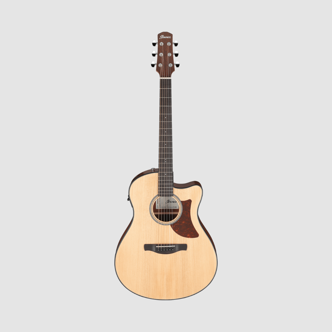 A Ibanez AAM50CE oferece a tocabilidade suave e o som que todos os guitarristas desejam. Este modelo acústico-elétrico vem equipado com um tampo sólido em abeto Sitka brilhante e articulado, combinado com fundo e ilhargas em sapele, apoiado por um braço em okoumé e uma escala em purpleheart com boa sustentação. Um pré-amplificador Ibanez AEQ-TP2 com um captador T-bar sob a sela amplifica esta guitarra de 6 cordas com uma clareza fenomenalmente transparente quando estiver pronto para ligá-la. A sua afiliação à série Advanced Acoustic Auditorium também promete aos músicos uma série de características de luxo, incluindo uma porta de som Acoustic Information Response (A.I.R.), um perfil de braço confortável e oval baixo e afinadores cromados 18:1 fundidos para uma entonação absolutamente soberba.