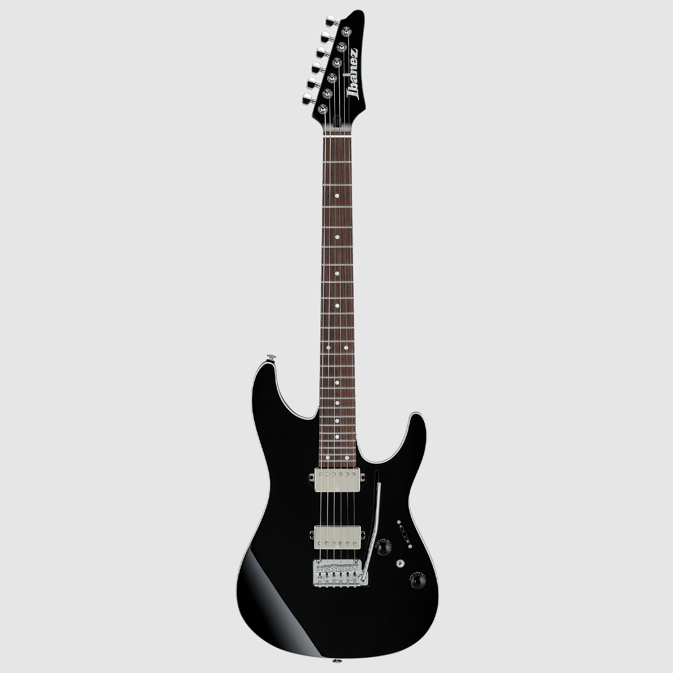 Ibanez AZ42P1-BK; guitarra elétrica AZ; série az; corpo: basswood; pescoço: bordo torrado; escala: jacarandá (dalbergia latifolia); montagem no pescoço: aparafusada; forma do pescoço: az oval c; embutidos: pontos de madrepérola; 24 trastes jumbo de aço inoxidável; porca: Graph Tech; largura da porca: 42 mm (1,65"); escala: 648 mm (25,51"); raio do fingerbard: 305 mm (12,01"); espessura no 1º traste: 21 mm (0,81"); espessura no 12º traste: 23 mm (0,89"); captadores: Seymour Duncan Hyperion humbucker (ponte), Seymour Duncan Hyperion humbucker (braço); controles: volume, tom, sistema de comutação dyna-MIX10; interruptor: 5 vias; tremolo: Gotoh T1502; acabamento de hardware: cromado; afinadores: Gotoh MG-T travamento; incl. gigbag; cor: preto; cordas de estoque: Daddario EXL110 .010 - .046