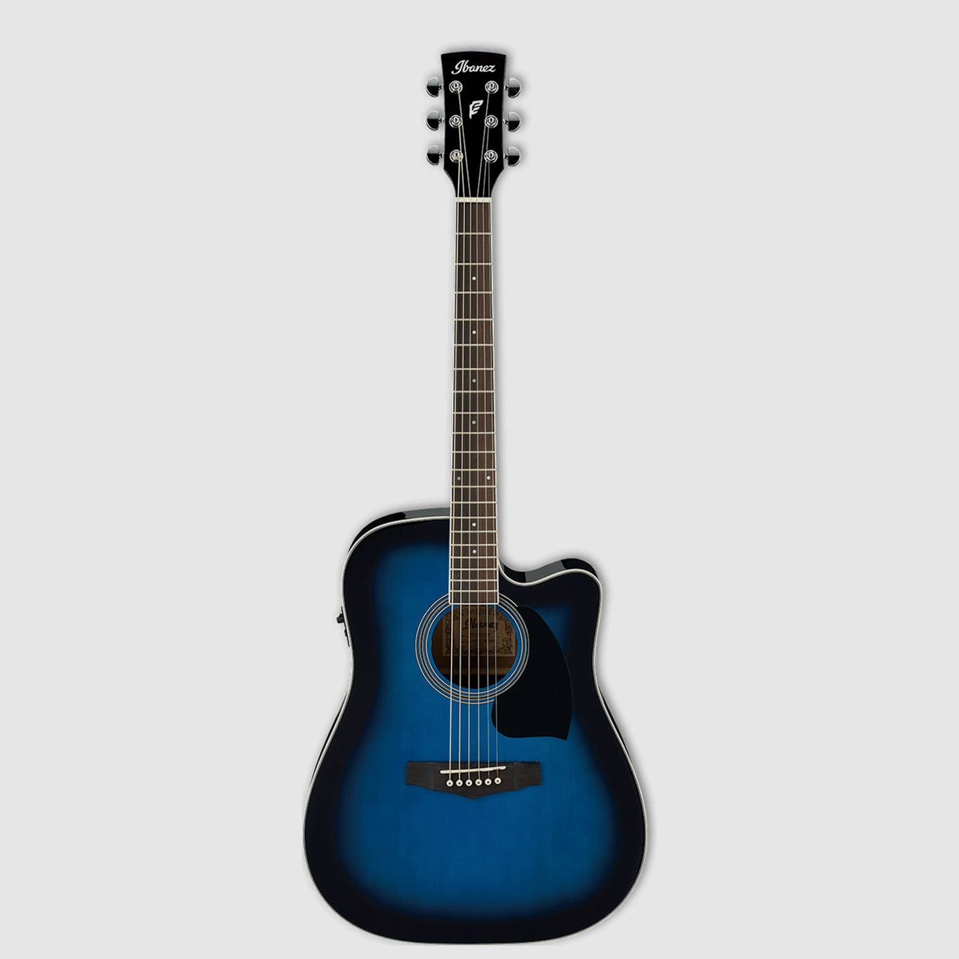 O Ibanez PF15ECE-TBS Transparent Blue Sunburst é perfeito para iniciantes que também querem praticar mais. Além de um corpo laminado de dreadnought, a guitarra acústica tem um sistema de captação fácil de usar, um cutaway e um pescoço plano com perfil "PF". Visualmente, o instrumento é mantido muito tradicional com apenas incrustações sutis e um robusto acabamento em alto brilho.