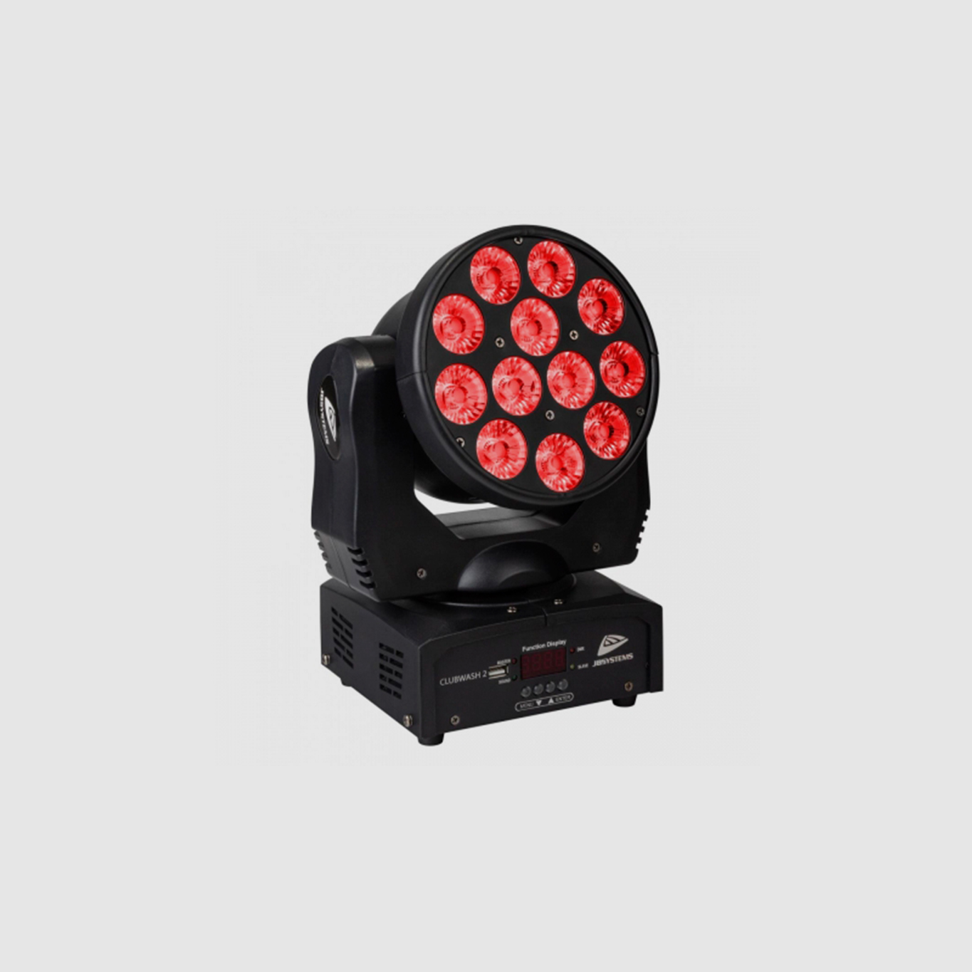 Led Moving Head Wash 12 x 12W RGBWA+UV; Modo DMX (5, 9 e 15 canais), Som e Master-Slave com vários shows pré-programados; Preparado p/ DMX Wireless; Display digital; Dimensões: 26 x 16 x 20cms; Peso: 3,40Kg