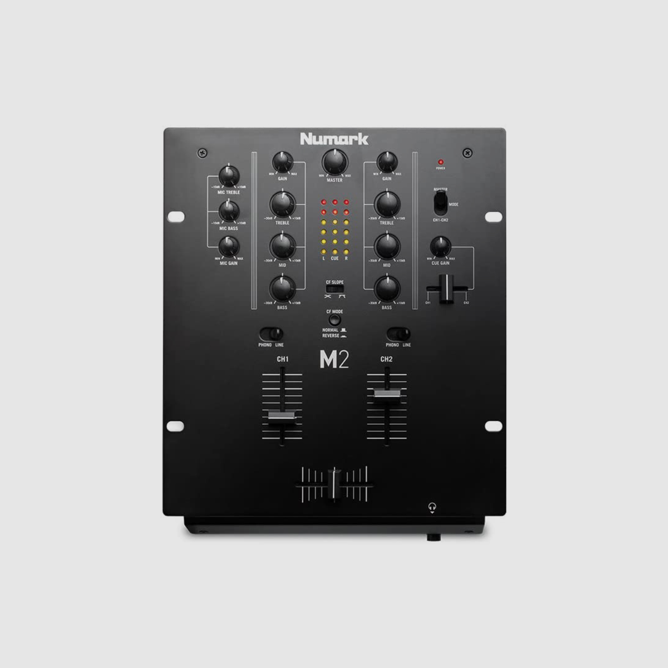 M2 é um misturador de DJ de dois canais especialmente concebido para zero, e que incorpora todos os elementos essenciais do estilo Numark. Telefone mudou entradas / linha para toca-discos, leitores de CD e outras fontes de nível de linha. Também tem uma entrada equipado com seu próprio EQ e ganho do microfone controle e uma saída de fone de ouvido com crossfader Pré tipo de escuta. Cada canal possui EQ de três bandas mais investimento crossfader e controle de inclinação.