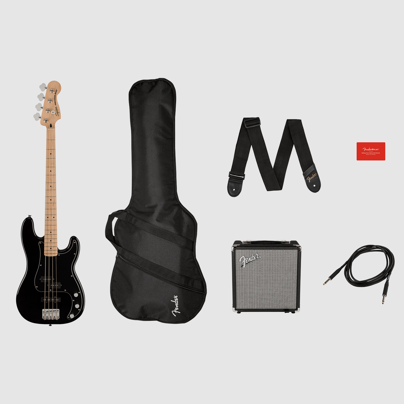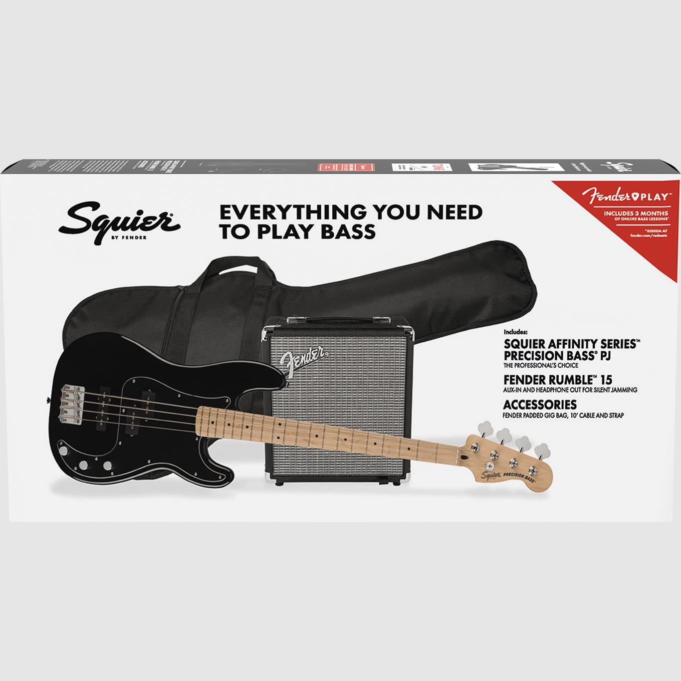 Oferecendo 15 watts de tom de baixo puro Fender, o amplificador Rumble 15 possui um alto-falante Fender Special Design de 8", EQ de três bandas, conector de fone de ouvido para prática silenciosa e um conector de entrada auxiliar para conectar um dispositivo de mídia. Com a bolsa gig acolchoada incluída, alça e cabo de 10', o Squier Affinity Precision Bass PJ Pack tem tudo que você precisa para transformar sua afinidade com a música em uma paixão ao longo da vida.