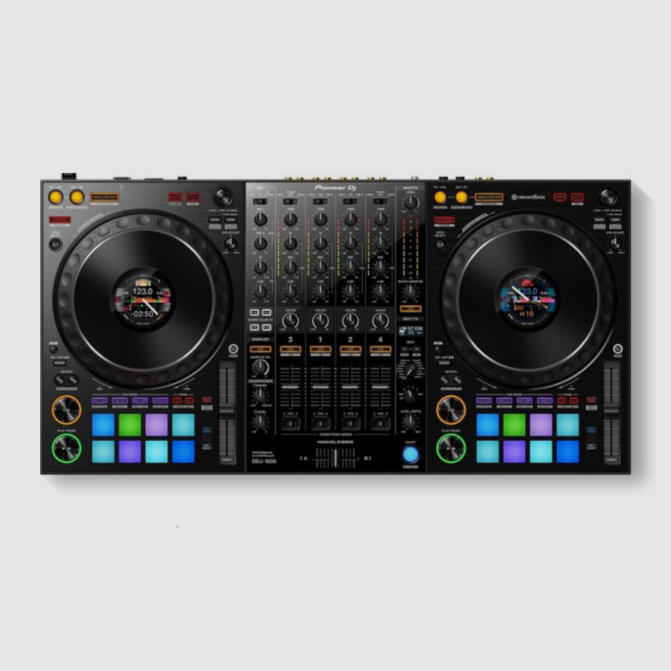 Tire o partido das novas funcionalidades melhoradas do rekordbox com o nosso controlador DJ de 4 canais dedicados. Com um layout profissional, os modelos da gama de alta qualidade NXS2, é uma solução portátil e compacta para atuar em festas e eventos. O DDJ-1000 apresenta os inovadores ecrãs LCD de alta definição em cada jog wheel, o que lhe permite manter os seus olhos intuitivamente no deck.
