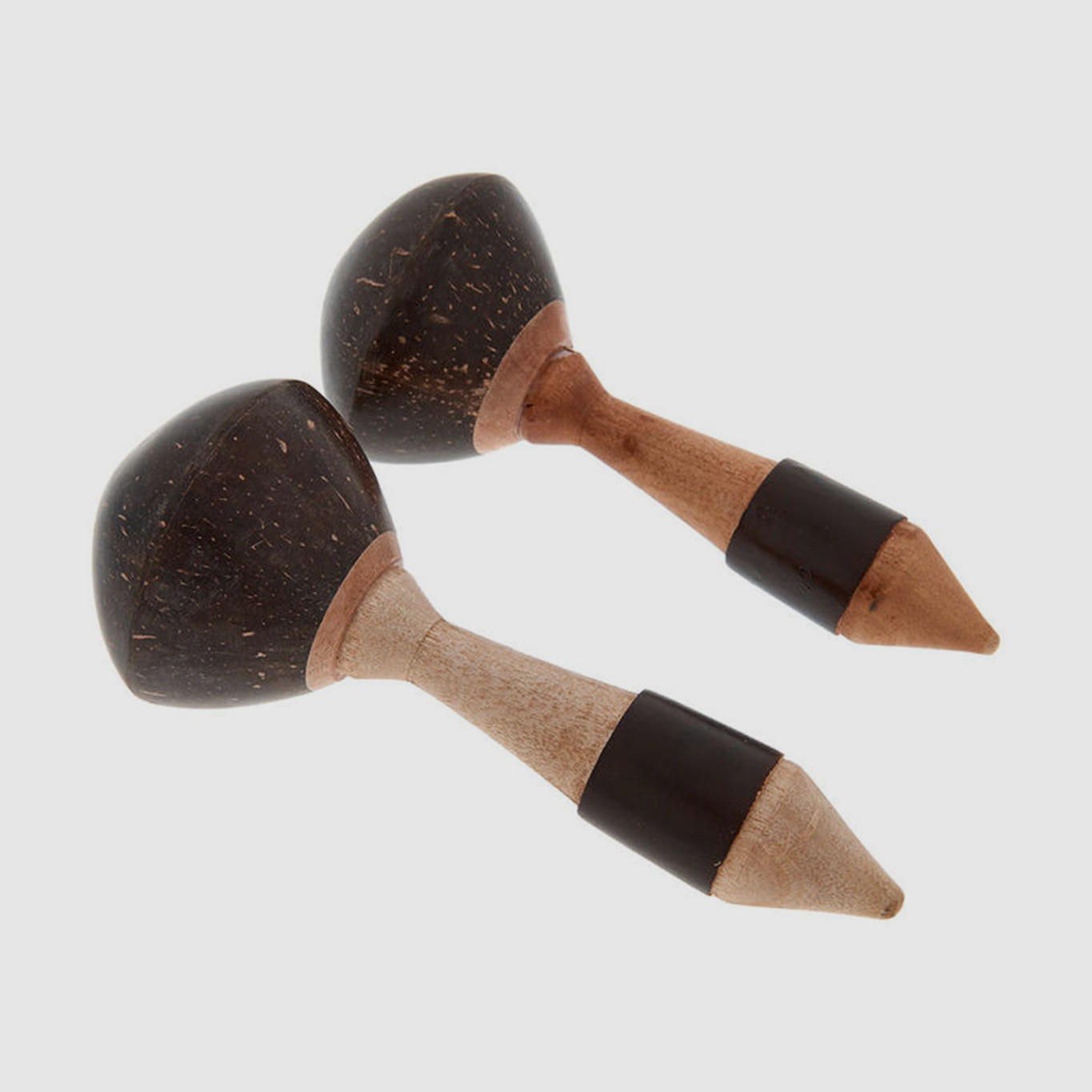 Maracas feitas em coco. Vendidas ao par. Têm um som muito forte e penetrante