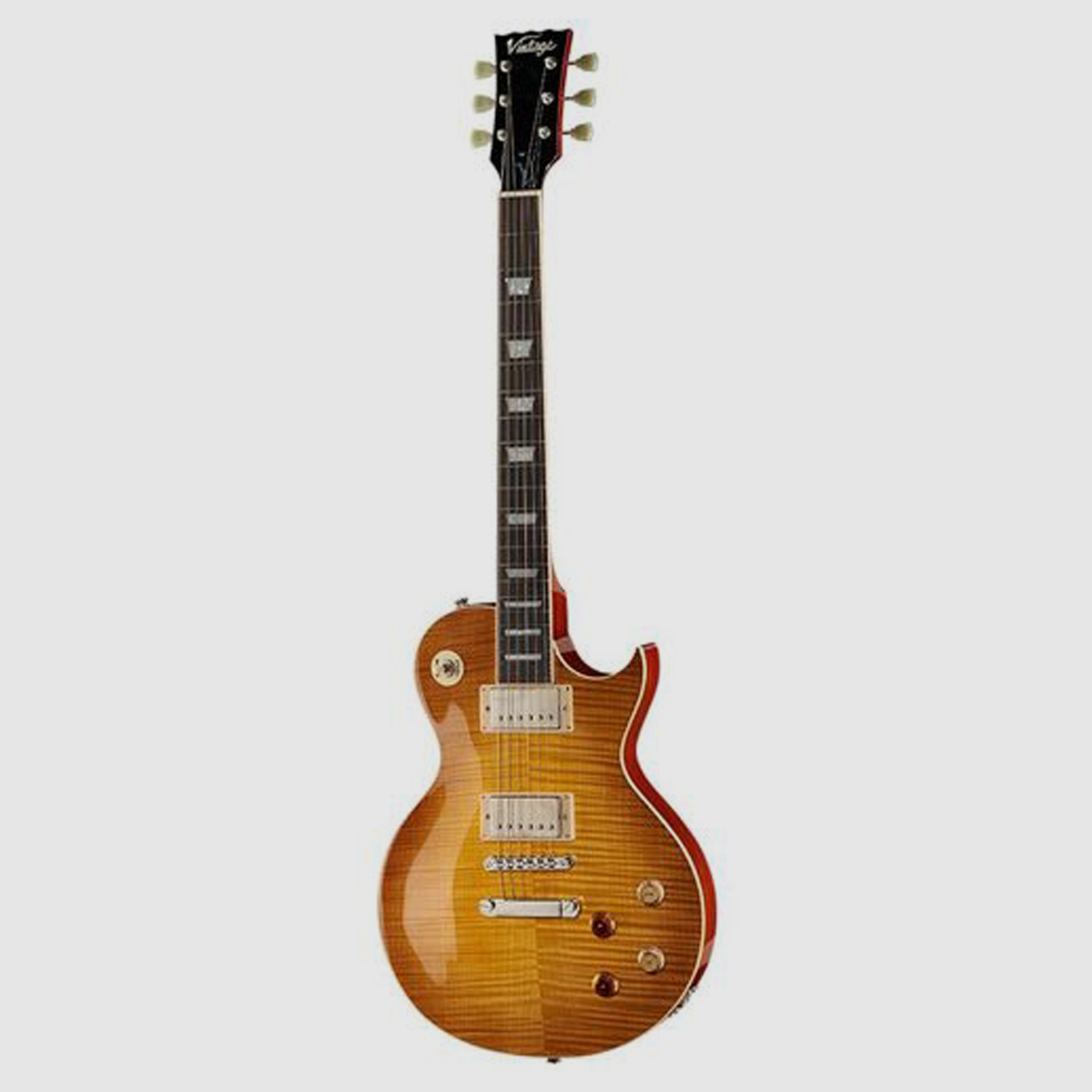 O Vintage V100PGM é um clássico. Um captador de braço invertido combina com fiação de posição central fora de fase para produzir um tom de solo gutural, cantante e instantaneamente identificável, ideal para blues lentos. Botões de tom e volume incompatíveis e um acabamento impecável garantem que o Lemon Drop mantenha o mojo funcionando. Esteja você procurando a sua primeira ou última guitarra, cada membro da série Vintage ReIssued é um guardião. Corpo de mogno com junta central de duas peças, com tampa de bordo sólido esculpido e folheado de bordo flamejante combinado proporciona ressonância, tom e conforto de “peso correto”. O Vintage V100 apresenta um formato de corpo único e evolutivo, com um gracioso ombro lateral de baixo descendente e um salto offset engenhosamente projetado, proporcionando melhor acesso às partes superiores do braço da guitarra. Ponte Wilkinson T.O.M. permite o ajuste fino de cada corda para uma entonação excelente em todo o braço da guitarra. Par de captadores duplos Wilkinson WVC com tampas de níquel misturam aparência tradicional com potência contemporâneas.